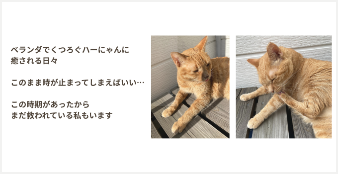 ハーにゃんと一緒!ベランダでの日向ぼっこの尊い時間