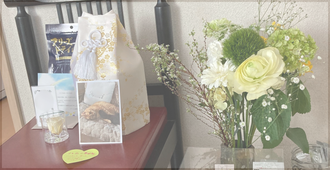 ハーにゃんのためにお花と、保護主さんのお家にいた頃のハーにゃんの写真を数枚いただきました。