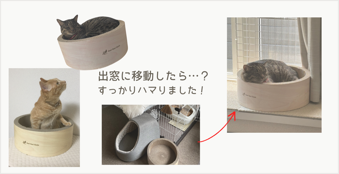 今では昼寝用として大活躍!窓を開ければ心地よい風が入り込み、日向ぼっこにも最適です。爪とぎの役目以上に快適な居場所になっているようです。